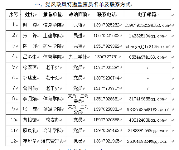 经学校党委会研究同意,现将学校纪委、监察审计室聘任党风政风特邀监察员有关事项公告如下: