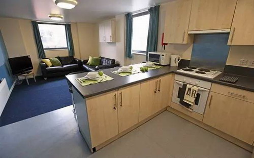 所有学生入住诺丁汉市中心四星级公寓楼,单人单间,独立卫浴,网络水电均免费使用。五人公用一个大厨房,厨房内配备沙发、电视、冰箱、烤炉、微波炉、吧台以及做饭的其它设施。小伙伴们可一起买菜做饭,真正体验一下留学生生活,培养自己的独立生活能力和团结互助能力。