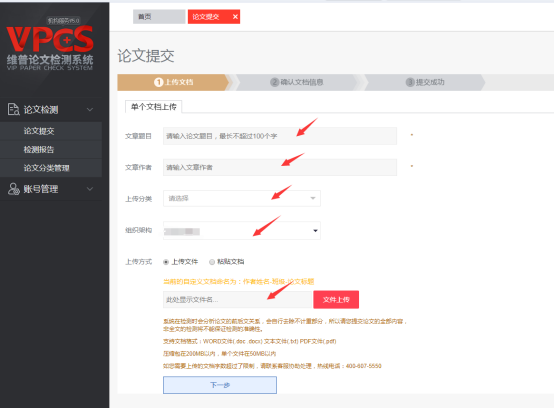 3.根据提示完善论文信息,提交后即可获取检测报告。