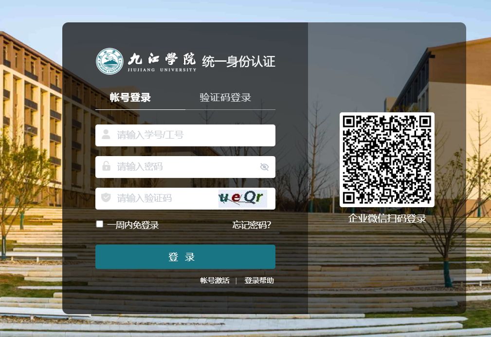 新版认证平台支持账号登录、验证码登录和微信扫码登录三种方式,登录界面如上图所示: