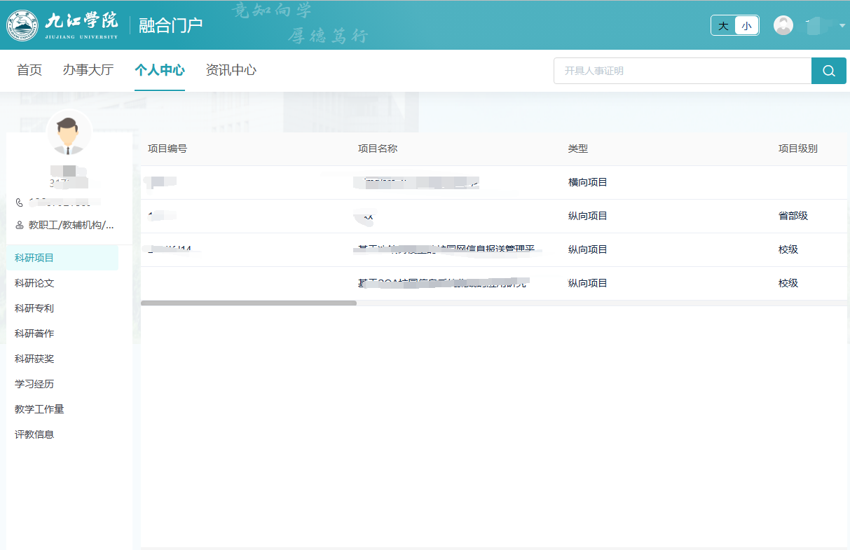 个人中心集成了个人的教学科研等信息,目前正在建设阶段。