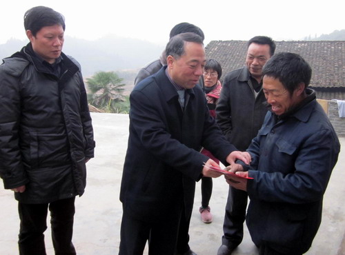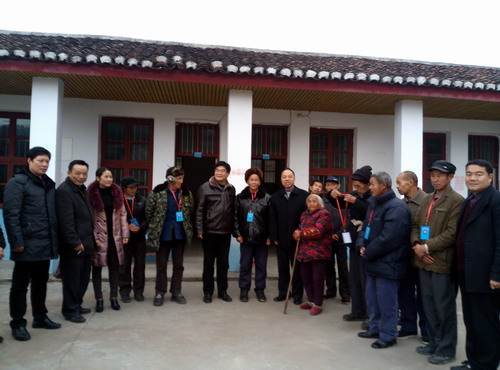 元月13日,校长甘筱青在离退休职工管理处处长周茂生、工会主席金葆金、扶贫工作队员杨泽明的陪同下,到永利yl23411集团官网定点包扶贫困村---武宁县上汤乡九宫村走访慰问。