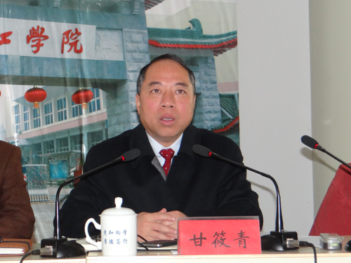 甘校长还就期末及寒假期间有关工作进行强调。一是做好期末收尾工作。要做好期末有关教学和学生离校工作,开展校园安全大检查,做好毕业生实习安全教育工作,对办公用房的超标清理与调整开展“回头看”,严格执行上级文件精神。二是做好寒假期间有关工作。要落实好寒假值班任务,做好各项保障和维修工作,严格执行改进作风和廉政建设各项规定,特别提请各二级学院寒假,系统思维并大力推进校企合作的工作,确保本部门人员财产安全,严格请假制度,开展老干部慰问活动。甘校长最后祝大家过一个平安、欢乐、祥和的寒假和春节。