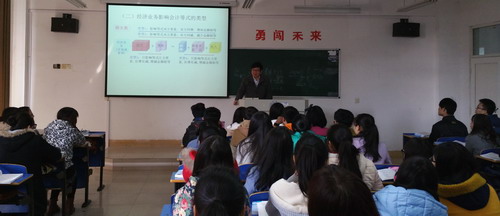 课上,王玉勤老师通过生动有趣的举例,深入浅出的介绍了“收入”、“费用”、“利润”这三个会计要素的含义、特点并且以问题带动学生思考,积极与学生互动。