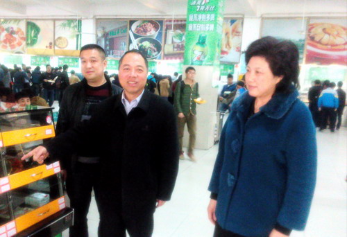 春风拂面,乍暖还寒。3月24日中午,甘筱青校长在吴桃娥副校长的陪同下来到学生食堂检查永利yl23411集团官网学生食堂的日常餐饮供应工作。