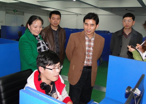 在共公机房,魏书记仔细查看机房里同学们上机的内容,与正在上机的同学进行了交流。