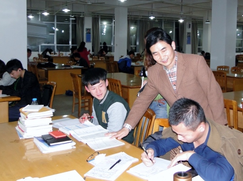 在厚德楼,魏书记分别走进旅游学院、信息学院正在进行晚点名的教室,了解晚点名的组织情况、考勤情况、工作内容、工作时长等。在逸夫图书馆,魏书记来到书库阅览区、自修室,查看学生的自修情况,并了解图书馆的日常管理和同学们对图书馆的使用情况。