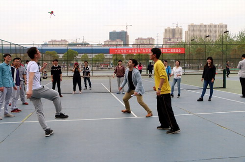 活动现场,民族传统运动“三脚板鞋”、“高脚竞速”、“踢毽子”和常规体育运动“双人跳绳”、“网球”等活动有序进行。