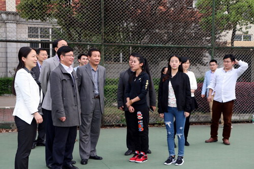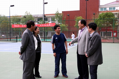 在室外网球场,大骨班学员正在开展“学会两项运动·开展三走活动”主题特色活动。汤瑞琪副主任、朱汉浩副主席、王万山副校长、校纪委魏立平书记、团市委宋晓妤书记等在学生处、校团委负责同志的陪同下,来到活动现场,观看同学们“三走”活动。