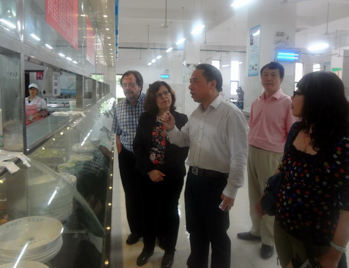 甘校长首先向法国访客介绍了八里湖校区利用社会公共体育资源的办学特色,既提高了体育教学质量,又更好的利用了社会资源。在甘校长的引领下,法国访客先后参观了校区图书馆、室内体育馆、学术报告厅、学生食堂、学生公寓等场所,期间甘校长全程用法语向客人进行了详细的介绍。