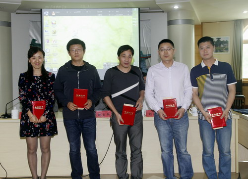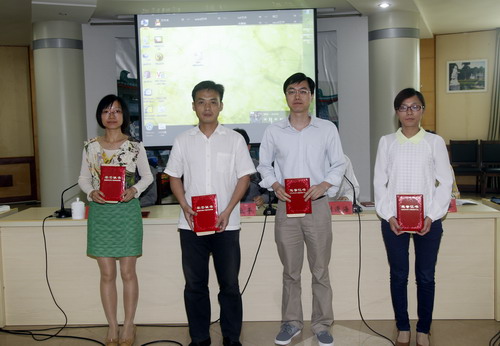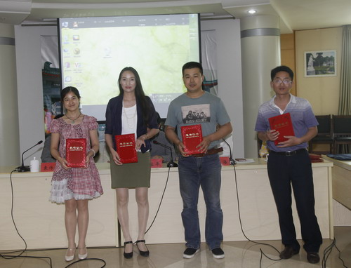 党院办副主任袁传发宣读了2014年度全校办公室工作先进集体和先进个人表彰决定,魏书记和党院办领导为获奖集体和个人颁奖。