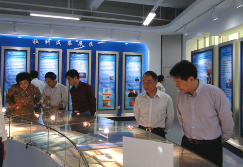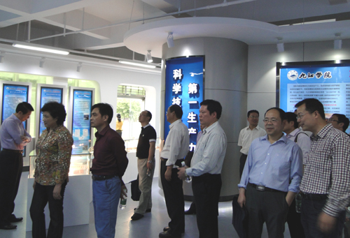 在热烈的掌声中,党委书记郑翔和校长甘筱青为展厅揭牌,副校长吴桃娥宣布“九江学院科研及专利成果展厅正式开放”,副校长纪岗昌主持揭牌仪式。各二级学院院长以及有关职能部门负责人等参加了揭牌仪式,并到展厅进行了参观。