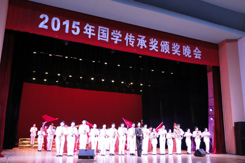 颁奖晚会分为“学习”、“风采”和“传承”三个篇章。晚会节目以本次获奖的集体和个人为主,充分展现了国学传承的艺术成果和国学的风采魅力。文传学院的诗朗诵《九院情》为母校送上的生日的祝福,土建学院的歌伴舞《月光》诉说游子思乡之情;政法学院的朗诵《满江红》慷慨激昂,外国语学院的《保卫黄河》震撼人心。艺术学院的管乐合奏《鲜红的太阳永不落》气势恢宏,留学生代表充满激情的朗诵《水调歌头》博得了全场观众一次又一次的掌声。