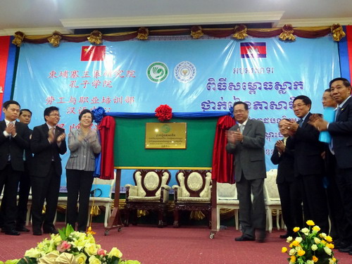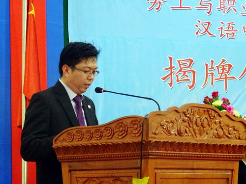 布建国大使出席柬埔寨劳工部汉语中心揭牌仪式