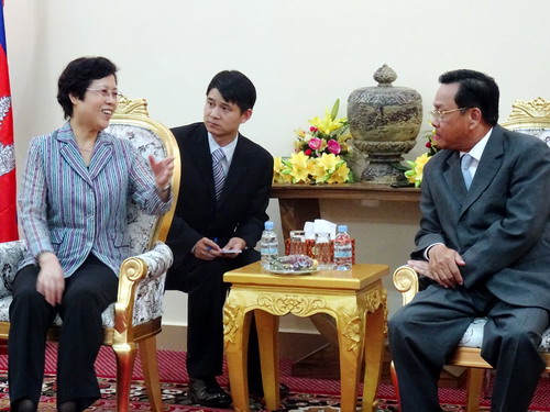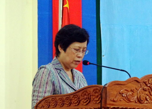 她表示,当前,随着中国国际影响力的提升和对外交流的扩展,汉语已成为世界第二大通用语言,成为一门深受各国人民喜爱的“全球性”语言,中国以外的汉语学习者迄已逾亿人。在柬埔寨,“汉语热”也持续升温。我们欣喜地看到,在柬埔寨政府和社会各界的关心支持下,王家研究院孔子学院不断发展壮大。如今,孔子学院的汉语教学已走出王家学院,走进参议院、内阁办公厅、政府部门、军队警察、学校及地方省市,融入柬埔寨社会多个层面,全面服务于两国友好合作。今天,孔子学院劳工部汉语中心正式揭牌,相信将为劳工部官员们打开一扇学习汉语以及了解中国的窗口。希望你们勤学苦练,扎实掌握这门重要的语言,这将有助于你们更多了解中国的社会文化,同时也便于更好与众多来柬投资兴业的中资企业和中国公民沟通交流,进一步增进彼此理解,促进双方合作。