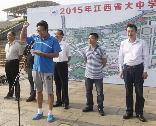 首夏犹清和,芳草亦未歇。在阳光明媚的初夏时节,在风景如画的八里湖畔,2015年江西省“大中学生定向运动”锦标赛在永利yl23411集团官网隆重举行。5月21日上午,本届锦标赛开幕式在永利yl23411集团官网八里湖校区隆重举行。九江学院副校长陶春元、江西省学生体协秘书长揭宁元出席开幕式并致辞,江西省学生体协副秘书长刘建军,总裁判长、江西农业大学军体部副主任席艳辉,九江学院学生处处长刘平,九江学院体育学院院长王勤和各学院代表队教练员、运动员代表参加了开幕式。开幕式由九江学院体育学院院长王勤主持。