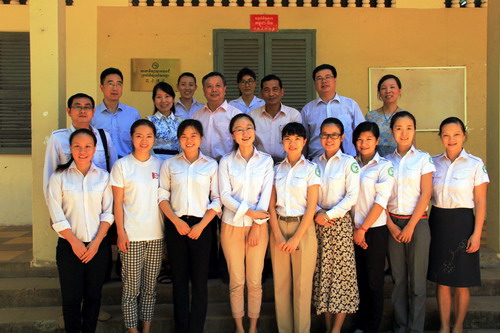 6月10日,江西省外侨办巡视员吴健民一行5人到访柬埔寨王家研究院孔子学院吴哥高中孔子课堂。吴健民一行此次访柬主要任务是调研推动作为柬埔寨暹粒省友好省的中国江西省如何在柬进行教育方面的深层合作。江西南昌市侨办副主任姚气先生、九江市侨办副主任胡丽华女士、赣州市侨办副主任王彦先生、江西省侨办工作处副处长陈智青女士等一同到访。