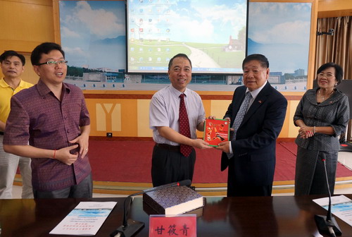 6月23日上午,柬埔寨王家学院孔子学院官员班访华团欢迎仪式在永利yl23411集团官网行政楼四号会议室隆重举行,校长甘筱青、副校长杨耀防、柬埔寨内阁办公厅副国务秘书布林兴(BUON LIMHENG)、图素琨(TUNG SOKUN)、柬埔寨孔子学院柬方院长谢莫尼勒(CHEA MUNYRITH)、参议院行政与财政司副司长金索帕(KIM SOPHA)、国际交流学院院长夏修龙、外国语学院院长韩琨、文传学院朱全国副院长、国际处王贤淼副处长、访华团其他成员、永利yl23411集团官网柬埔寨留学生和有志于今后赴柬埔寨孔子学院任教的的外国语学院师生等共50多人出席了欢迎仪式。仪式由王贤淼副处长主持。