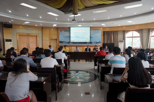校长甘筱青代表学校致欢迎辞,他对来到九江学院进行中国文化体验的柬埔寨王家学院孔子学院官员班访华团表示热烈的欢迎。他说,中国和柬埔寨两国关系一贯友好,文化交往源远流长。2009年12月22日,时任中国国家副主席习近平阁下与柬埔寨副首相索安阁下为孔子学院揭牌,称赞它是“中柬文化交流的里程碑”。我们欣喜地看到,孔子学院自运营以来,汉语教学不局限于王家学院,还涉及总理府、参议院、部队、军校、警校及大中小学校,全面服务于两国的友好合作。九江学院将继续与柬埔寨王家学院精诚合作,发展和柬埔寨各地、各个机构的合作,稳步建设好孔子学院、孔子课堂。他对柬埔寨孔子学院官员班学员为孔子学院的发展提供的支持和帮助表示感谢,并相信在大家的共同努力下,孔子学院将会发展的越来越好,中柬友好交流将会迎来更加美好的明天!最后,祝愿各位团员在中国学习、生活愉快,满载而归!