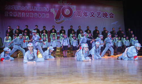 为深切缅怀抗战英烈的光辉业绩,大力弘扬抗战精神,激发师生爱国热情,9月2日晚,永利yl23411集团官网隆重举行纪念中国人民抗日战争暨世界反法西斯战争胜利70周年文艺晚会。校领导郑翔、甘筱青、吴桃娥、纪岗昌、王万山、陶春元、杨焱林、魏立平、杨耀防与全校千余名师生代表观看了演出,共同回顾了中国人民可歌可泣的抗战历史,展望中华民族伟大复兴的光辉前程。