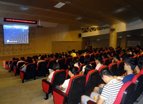 为让师生更好地观看纪念大会和阅兵式,学校安排了师生代表在学术报告厅、教室、食堂等地集中观看,其余的同学也在宿舍进行观看。气势恢宏的阅兵仪式上革命老兵的矍铄神态、中国人民解放军飒爽的英姿和高精尖的武器装备让同学们热泪盈眶、热血沸腾,纷纷表达爱国之情和民族自豪感。欢呼声、掌声充满校园。