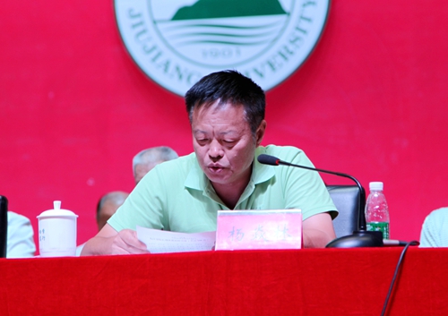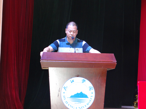 副校长纪岗昌宣读了《中共九江学院委员会 九江学院关于表彰2014-2015学年优秀教师、优秀教育工作者、优秀辅导员、优秀班主任和先进集体的决定》。