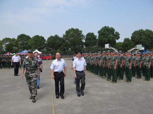 9月10日是永利yl23411集团官网2015级新生军训正式开始的第三天。上午十点,校长甘筱青、副校长王万山来到位于主校区田径馆附近的军训场地,看望并慰问了参加军训的2015级学生。