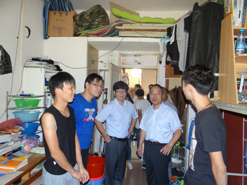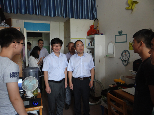 随后,甘校长一行先后来到34栋艺术学院学生宿舍和31栋信息学院学生宿舍,查看宿舍“垃圾进袋”管理工作的实施情况。