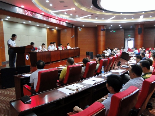 9月23日下午,校党委书记郑翔在逸夫图书馆学术报告厅主持召开“三严三实”专题教育学习研讨会。在家校领导吴桃娥、王万山、陶春元、杨焱林、魏立平、杨耀防以及各二级学院党政主要负责人、各部门主要负责人参加了研讨会。