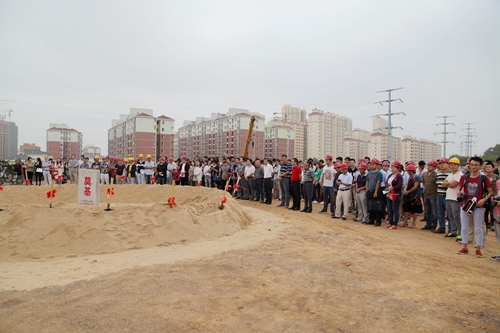 当人们来到项目所在地,可看到开工奠基仪式现场竖着五个大牌子:一个是开工奠基仪式背景墙,其它四个是介绍该项目的效果示意图。背景墙的正前方是扎着大红绸子奠基石,其四周是十几把插在沙堆上的扎着红绸子的铁锹,项目开工奠基仪式在鞭炮声中拉开序幕。