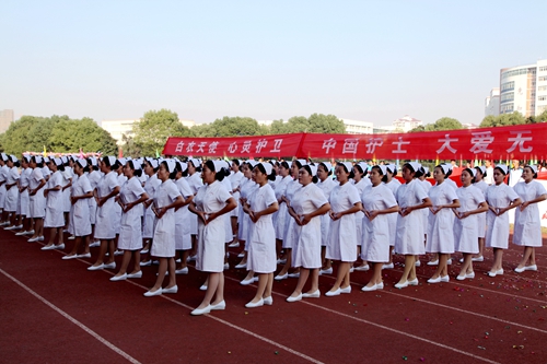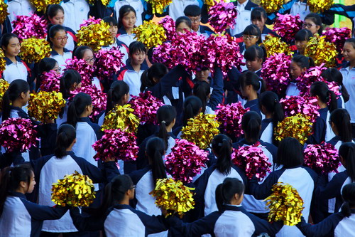 教职工代表队最后入场,全场雀跃欢呼,讲台上他们怀着俯首甘为孺子牛的精神;怀着献身九院传授知识的无私;怀着共创九院美好未来毫无保留的贡献自己的智慧和力量。