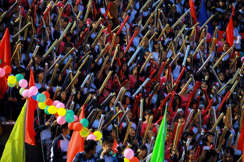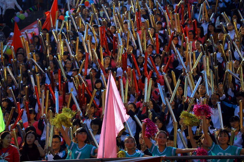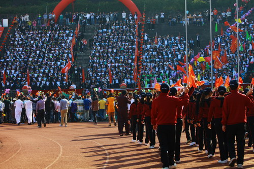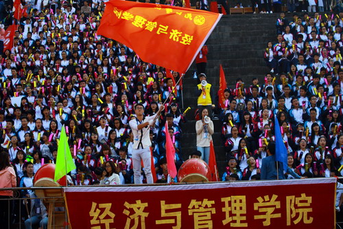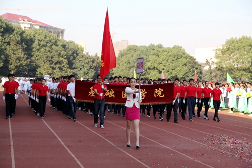 在热烈的掌声中,校党委书记郑翔宣布:九江学院第十四届运动会开幕!