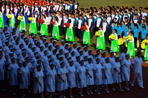 校长甘筱青致开幕词。甘校长指出,体育既是促进学校发展,实现培养目标的重要手段,也是学校加强精神文明建设,培养学生优良品质的重要举措。近年来,学校多次组队参加全省,全国乃至国际性的比赛,成绩喜人,为学校争取荣誉。举办运动会,是对永利yl23411集团官网体育工作,师生精神风貌和综合素质的大检阅。
