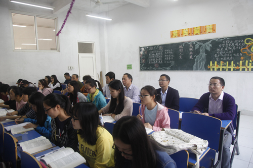 10月23日上午,甘筱青校长来到文学与传媒学院听课调研。教务处马明亮处长,文传学院院领导汤红莲、吴国富、周子渊一同听课。