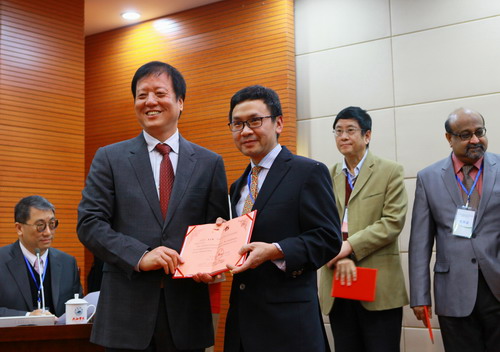 杨耀防在开幕式上致辞。他说,在这霜林染醉、枫叶流丹的深秋时节,我们相聚在环境优美的九江学院校园,共同出席2015年肿瘤基因组学和生物学国际学术研讨会。他介绍了出席本次研讨会的专家和嘉宾,并代表学校四万名师生,向他们的到来表示热烈的欢迎。同时向为本次研讨会顺利召开给予支持的全球肿瘤基因组联盟和癌转译研究组织致以诚挚的谢意。接着,他简要介绍了承办本次研讨会的永利yl23411集团官网和仁信肿瘤医学集团的基本情况。杨耀防指出,肿瘤是全世界关注度最高的医学论题之一,研究肿瘤、攻关克难、拯救生命是全体肿瘤医学界的光荣梦想和崇高使命。我们组织召开这次国际学术研讨会,旨在增强国内外医学界在肿瘤、基因组学、生物学等领域的合作与交流,探索和挑战科学前沿问题,进一步提升中国在相关研究领域的学术水平和影响力。杨耀防指出,莅临本次学术研讨会的国内外专家们都具备深厚的学术功底和丰富的临床经验及研究成果。召开这样一次高水平的学术研讨会,对于永利yl23411集团官网广大师生是一次学习和了解肿瘤医学及生物学学术研究新进展、开拓国际视野的极佳机会。杨耀防最后希望与会嘉宾充分利用研讨会这个平台,开展深入交流和讨论,充分整合国际肿瘤基因组学和生物学研究方面的前沿成果,共同推动肿瘤基因和生物学专业学科的蓬勃发展。预祝2015年肿瘤基因组学和生物学国际学术研讨会圆满成功。祝各位专家和嘉宾身体健康、万事如意。