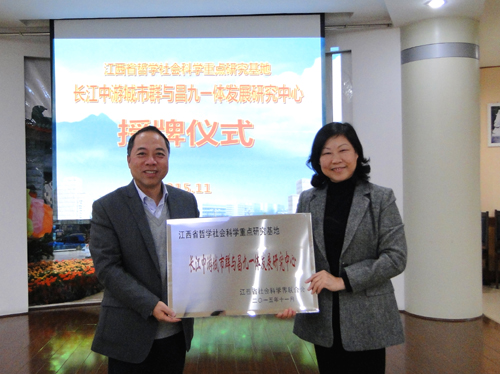 江西省“长江中游城市群与昌九一体发展研究中心”授牌仪式在永利yl23411集团官网举行