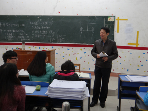 课后,郑书记对本堂课进行了点评。他评价刘老师的授课有四个优点:一是课前的作业点评非常有针对性;二是字迹潇洒漂亮,板书工整、清晰;三是普通话标准,讲解清楚;四是授课重点突出,课堂气氛好。