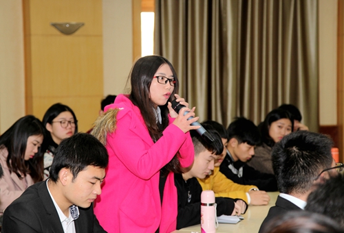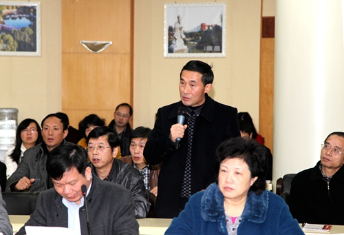 会上,学生处、教务处、招就处、保卫处、实验中心、国资处、图书馆、信息中心、后勤管理处、财务处和宣传部等职能部门负责人就学生代表所提出的问题作了表态性发言。