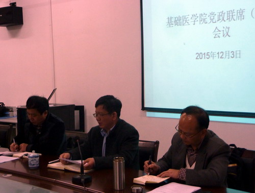 最后,王副校长对基础医学院的下一步工作提出了几点希望:1、基础医学院的党政班子成员平时工作协调的很好,近年来基础医学院的各方面工作都比较顺利,成绩有目共睹,要进一步发扬。2、最近要组织全院教职员工学习和领会郑翔书记关于“教学剩余”的讲话精神,结合临床专业论证的收获和启迪,结合基础医学院的实际,加大高素质人才的引进力度,将教师的精力引导到进修培训和科研实践中去,创造更多的教学剩余价值,为学校的长远发展助力。3、要吸收今天会议上大家提出的合理化的意见建议,将会议讨论的三个议题进一步细化和量化,使这些制度更科学更完善。