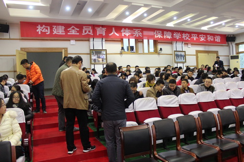 12月8日上午,以江西省委政法委副巡视员余水根为组长的江西省综治工作(平安建设)考评专家组来永利yl23411集团官网,就2015年度永利yl23411集团官网平安建设及综治工作进行实地检查和考评,检查组成员包括省综治办三处程振林主任科员、南昌市东湖区610办尚春保副主任。考评专家组出席了在校行政楼一号会议室举行的汇报会,校党委书记郑翔、副校长王万山、校纪委书记魏立平出席,汇报会由校纪委书记魏立平主持,校维稳工作领导小组成员单位负责人参加了汇报会。