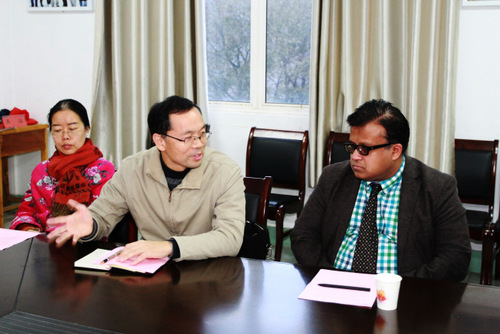 受到现场气氛的感染,外教Ashfaq, 曾经为Raza学生现已在国际交流学院任教的外籍教师Hussain,以及Godfred 、Henry、教务科科长甘霖和留学生代表纷纷发言,他们都表示了对外教Tanveer Raza的感激之情和依依惜别之意,并真心祝愿他在新的国度工作顺利、生活美好。