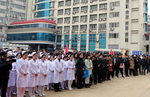 副校长杨焱林在开工仪式上讲话。杨焱林指出,附属医院新门诊综合大楼开工奠基,是九江学院医学教育事业的一件大事,是我市医疗卫生事业发展中的一件大事,是为全市人民健康谋福祉的一件实事和好事。在新大楼建设工程的规划和实施过程中,校领导高度重视,市政府大力支持,市领导多次亲临考察指导,为项目的顺利开展做了许多有益的推动工作。