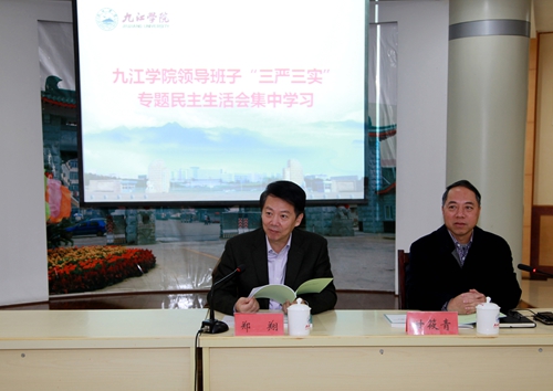 4日下午,学校领导班子“三严三实”专题民主生活会第二阶段的开展批评与自我批评活动在行政楼党委会议室进行。校党委书记郑翔主持会议。到会指导的有:省教育工委委员、省教育厅副厅长肖志华,省委教育工委组织部、省教育厅人事处调研员甘国华、省委组织部干部四处干部郭亮亮、九江职业技术学院纪委副书记、监察室主任吴节军、市纪委第四纪工委副书记兼第四监察分局局长、市委第四巡视组副组长陈江来,市委组织部调研科科科长、干部四科科长郭宇。参会党委班子成员有:校党委书记郑翔,校党委副书记、校长甘筱青,校党委委员、副校长吴桃娥,王万山,杨焱林,魏立平,杨耀防。列席会议的有:市政协副主席、副校长纪岗昌,陶春元,市政协委员、化环学院院长严平,政法学院教授颜万发。作为会议工作人员的有:组织人事部、宣传部、党院办、纪委、监察室、党校、等部门负责同志。