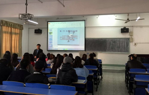 2月29日上午,纪岗昌副校长来到竞秀楼107教室,听取了艺术学院吕彪老师讲述的《艺术概论》课程。艺术学院欧阳时来副院长及教务科老师一起陪同听课。