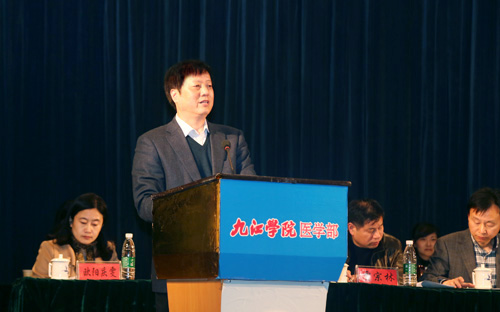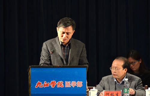 杨焱林副校长致辞,他代表学校党委行政向大会的胜利召开致以热烈的祝贺,向付出辛勤劳动的医院广大干部职工表示亲切的慰问。杨副院长指出,在过去的一年,临床医学院/附属医院按照学校党政领导的工作部署和要求,不断追求卓越,硬件和软件水平都实现了质的飞跃。三甲复评首批获牌,医疗质量显著提高,环境面貌焕然一新,服务流程全面优化,其中,咖啡吧、空中连廊、家化式VIP病房等院区环境创新改造,以及空姐加盟导诊、收费取药敞开式窗口服务及夜间门诊长效运作等一系列创新举措,在改善患者就医体验上取得了显著成效。他表示九江学院会一如既往地支持临床医学院/附属医院的发展建设,并就文化建设、学科建设、民主建设等方面提出了要求,希望全院干部职工要乘势而上,加快改革创新步伐,在患者就医体验上体现更多人文关怀,突出“以人为本”的精神理念和价值取向,坚持医教并重,抓实事、练“内功”,推进学科建设,为实现新的飞跃不懈奋斗!