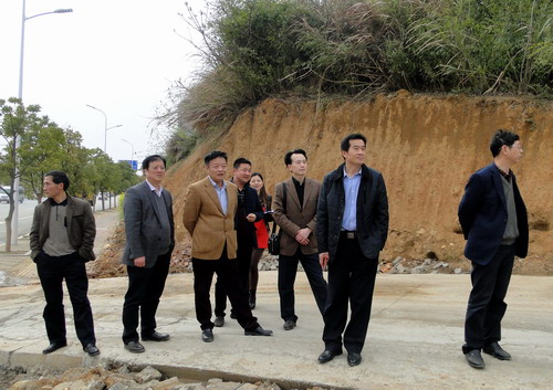 杨副校长一行又来到校园北门,察看了周边情况。发现外围墙与两南山交界处,有一个窄小缺口,影响校园安全,他要求基建处用铁丝网将缺口栏住。要求国资处与市政、电力有关部门联系,尽快完成两南山外围挡土墙及木家垄路艺术大楼区域的高压线塔处挡土墙建设工作。