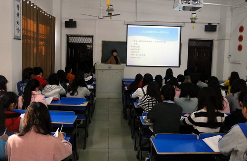 4月1日上午第二节课,校党委书记郑翔来到浔东校区华文楼101教室,随机听取了护理学院汪小燕副教授为护理A1411/A1412班同学讲授的《健康评估》课程中“感觉功能检查和神经反射检查”一节内容。教务处长马明亮,护理学院院长王绍锋、党委书记丁蓉等一同听课。