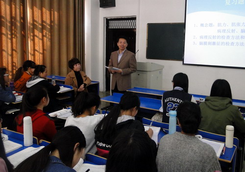 课堂上,汪小燕老师围绕教学内容,以PPT形式,图文并茂地讲述了感觉功能检查和神经反射检查的相关内容,并列举了大量的病例进行说明,使同学们在温习已学知识的基础上,掌握了新的知识。上课过程中,汪老师与学生互动交流,课堂气氛活跃。郑书记坐在学生中间,聚精会神地听讲,认认真真地记笔记。