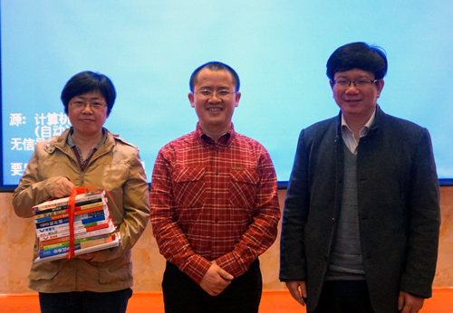 随后,石章强与同学们进行了深度互动,并认真解释回答了同学们的问题。最后,石章强先生将他多年著作的十余本畅销专著赠送给母校。副校长王万山代表学校接受了石章强的赠书。