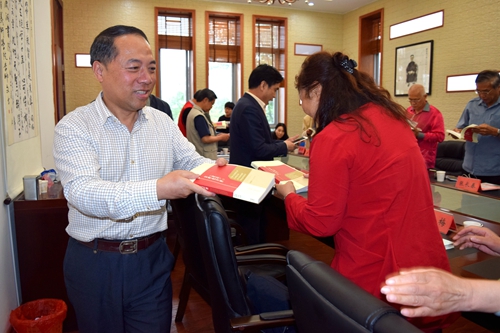甘校长最后向各位校董赠送了《<论语>的公理化诠释》一书并合影留念。
